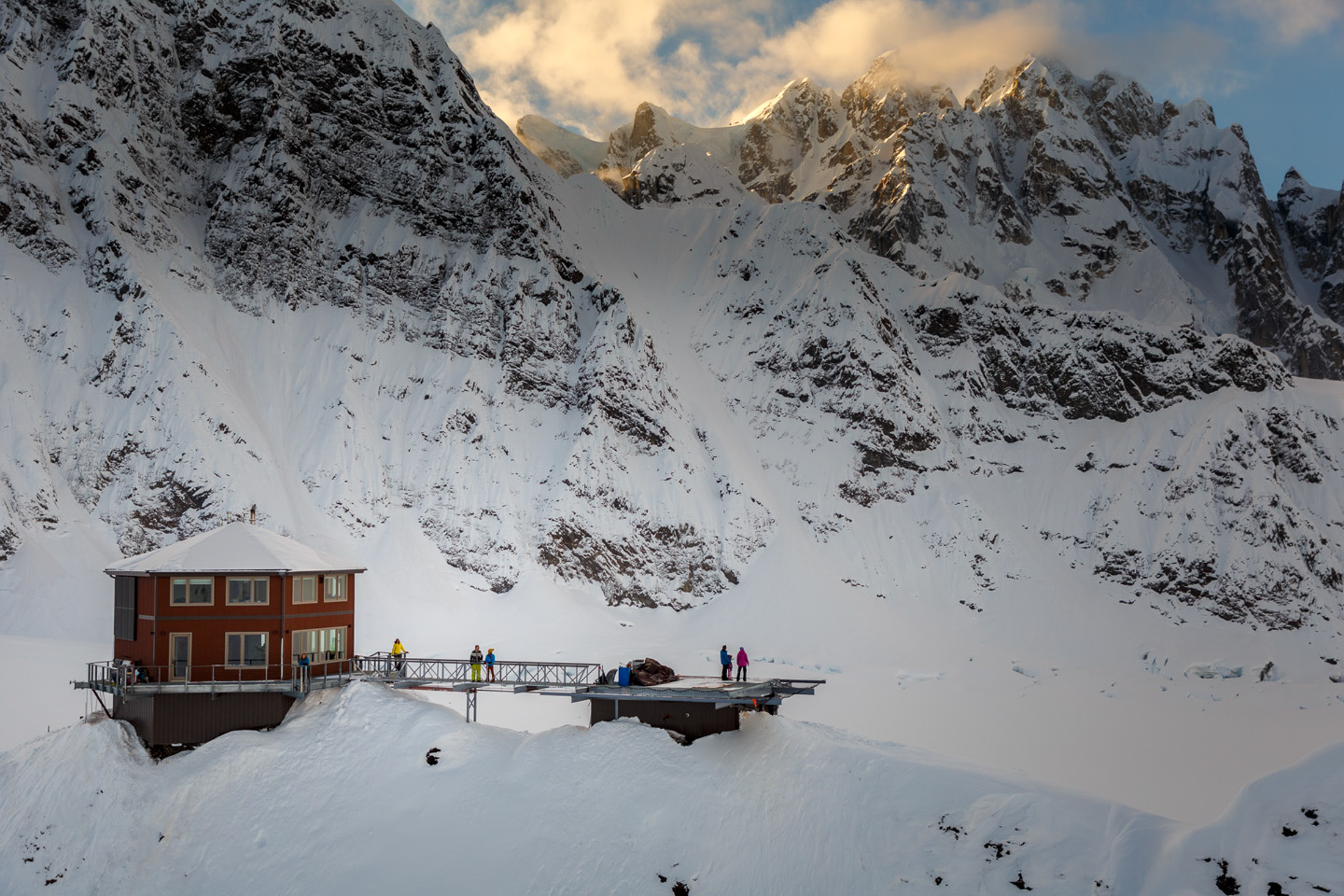 The Sheldon Chalet is a true five star Alaskan wilderness experience. Perched on a nunatak 6,000 ft above the Don
