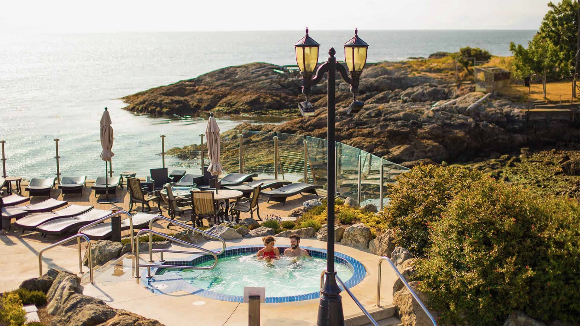 The serene oceanfront ambiance of the Boathouse Spa & Baths adds to the overall experience, transporting you to a state of deep relaxation. The spa features three heated seaside mineral pools. Guests have access to the Boathouse Kitchen & Bar offering a selection of cocktails, wine, and beer as well as appetizers, main dishes, and desserts.